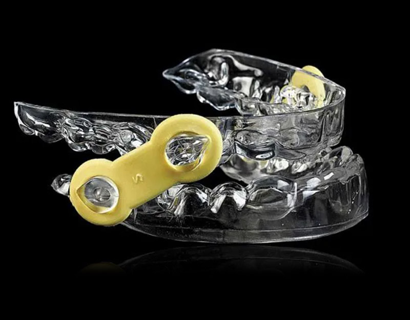 Dental Lab Direct’s EMA ( Elastic Madibular Advancement) Device is a simple, user -friendly custom-made appliance created for noninvasive, unobtrusive treatment of Sleep Apnea (OSA) and Snoring. The primary treatment mechanism of opening the bite and gently moving the mandible forward is achieved with the use of interchangeable elastic straps that offer varying degrees of mandibular advancement.